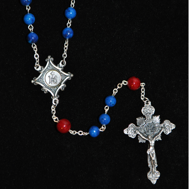 Handmade Eucharistic Rosary / Rosary Designs / By DesignMyRosary This set of handmade Eucharistic Rosary beads is made with blue river stone Hail Mary beads, red river stone Our Father beads with a detailed center and crucifix. Share the post "Handmade Eucharistic Rosary"FacebookXPinterestEmail